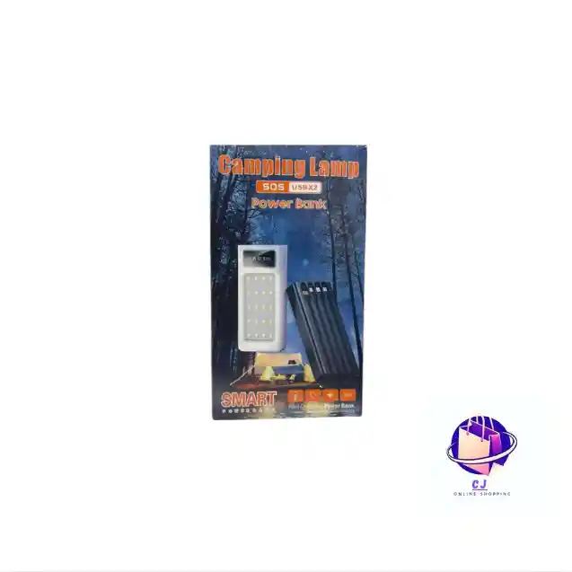 Lámpara portátil para camping con batería recargable integrada tipo power bank, ideal para iluminación en exteriores y emergencias. Diseño resistente y práctico, permite cargar dispositivos móviles y ofrece luz potente con bajo consumo, perfecta para viajes, camping y uso diario.