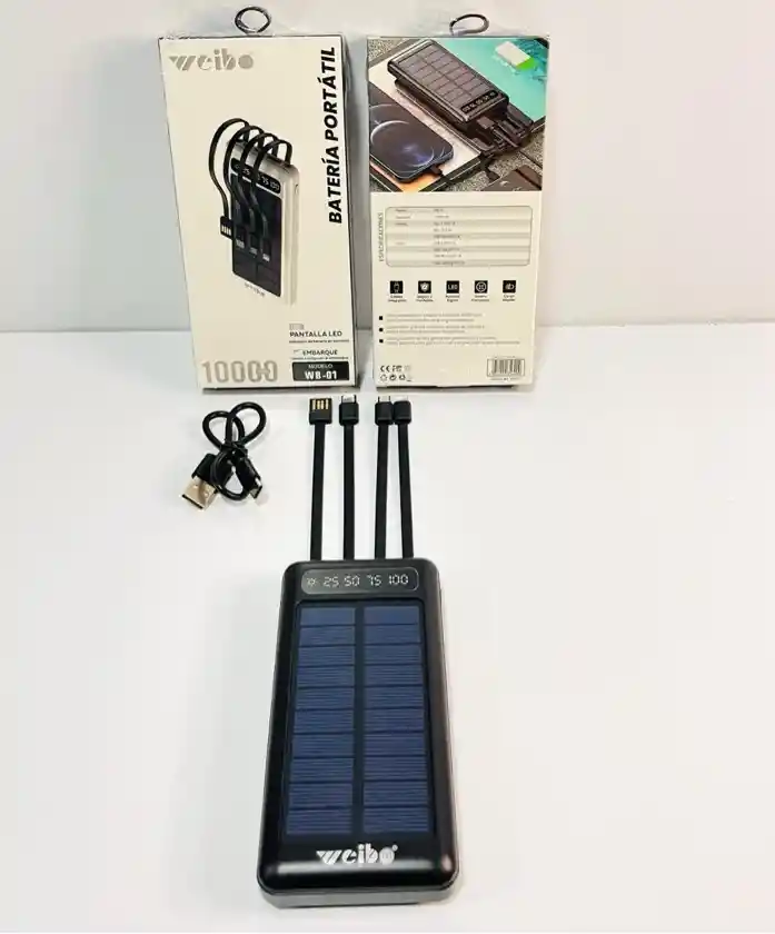 Power Bank De 10.000 Con Panel Solar Y Múltiples Cables De Carga Incorporados Marca Weibo