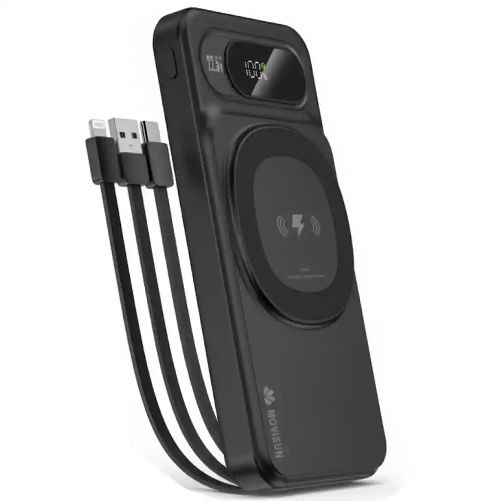 Power Bank Cargador Portátil Movisun I-1030 – 10000 mAh con Carga Inalámbrica y Puerto Tipo C Mantén tus dispositivos siempre cargados con el Power Bank Movisun I-1030, un cargador portátil de 10000 mAh diseñado para brindar comodidad y eficiencia en cualquier lugar. Este modelo incorpora carga inalámbrica, puerto Tipo C, puerto USB tradicional y un sistema de carga magnético seguro, asegurando que tus dispositivos reciban energía de manera confiable y sin riesgos. Incluye – 1 Power Bank Movisun I-1030 – 1 Cable de carga USB – Manual de usuario Especificaciones del Producto Modelo: Movisun I-1030 Capacidad: 10000 mAh Carga inalámbrica: Sí Puerto USB: Sí Puerto Tipo C: Sí Voltaje de entrada: 12V Voltaje de salida: 22.5W Ciclos de carga: Duraderos para múltiples recargas Funciones: – Carga rápida y eficiente – Compatible con celulares, tablets y otros dispositivos USB – Sistema magnético seguro para carga inalámbrica Material: Plástico resistente y componentes internos de calidad Dimensiones (cm aprox.) – Largo: 12 – 14 cm – Ancho: 6 – 7 cm – Alto: 2 – 3 cm Características principales – Carga rápida y eficiente con 22.5W de salida – Gran capacidad de 10000 mAh para múltiples recargas – Carga inalámbrica segura con tecnología magnética – Puerto Tipo C y USB para mayor compatibilidad – Diseño portátil y ligero, fácil de llevar a cualquier parte – Material resistente para un uso diario seguro – Ciclos de carga duraderos para prolongar la vida útil del dispositivo Garantía Este producto cuenta con 6 meses de garantía por defectos de fábrica o fallas técnicas bajo uso adecuado. Política de Retracto Aplica derecho de retracto por 5 días hábiles desde la entrega, siempre que el producto esté completo y en buen estado. Nota Importante – Si el producto llega dañado al recibirlo, notifícalo a la transportadora dentro de las primeras 24 horas. – Todos los productos son verificados antes del envío. – Para hacer válida la garantía, se deben enviar fotos y videos donde se evidencie claramente la falla.
