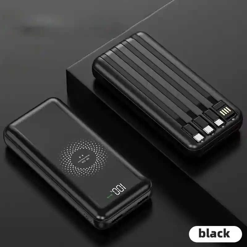Power Bank Magnética 12.000 mAh Color: Negra Nueva Batería Portátil de gran capacidad 12000 mAh banco de energía inalámbrico magnético integrado en 4 cables cargador de batería externo portátil Función *Carga inalámbrica, Magnético, Pantalla LCD Interfaz de salida *Tipo C, USB triple, Inalámbrica Tipo de *De alta capacidad, Con cable, Cargador inalámbrico, Portátil, Ultra Slim Potencia de salida *10w,5w Tipo de batería *Batería de polímero de litio