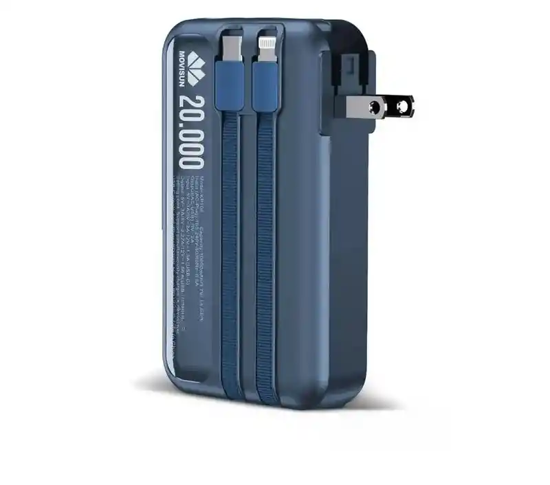 ⚡ Power Bank MOVISUN R20W | 20000mAh | Carga Turbo QC18W + PD20W | Enchufe Integrado ✨ Potencia total, sin cables extra. El MOVISUN R20W es el power bank definitivo para quienes buscan velocidad, comodidad y seguridad. Con 20,000 mAh de capacidad, ofrece carga rápida QC18W y PD20W, además de cables Tipo C y Lightning integrados, para que nunca te falte energía estés donde estés. ⚙️ Características destacadas: ✅ Capacidad: 20,000 mAh 🔋 ✅ Carga turbo rápida: QC18W + PD20W ⚡ ✅ Pantalla LED inteligente: muestra el porcentaje de batería en tiempo real 💡 ✅ Enchufe retráctil: se conecta directo a la pared — sin cables adicionales 🔌 ✅ Cables incorporados: Tipo C y Lightning, compatibles con la mayoría de dispositivos 📱 ✅ Entradas: AC 100-240V | Tipo C 18W ✅ Salidas: • Tipo C: hasta 20W • USB-A: hasta 18W • Lightning: hasta 2.1A ✅ Certificaciones: CE, FCC, RoHS 🛡️ ✅ Protección avanzada: evita sobrecalentamiento, sobrecarga y cortocircuitos 🔒 ✅ Diseño compacto y portátil: ideal para viajes, oficina o uso diario ✈️ 🚀 Ideal para: quienes quieren máxima autonomía, carga rápida y todo en un solo dispositivo.