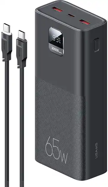 El potente Power Bank Usams PD68 modelo US-CD185 en carcasa metálica de color negro está equipado con una batería de polímero de litio mejorada de 30,000mAh de capacidad total y una potencia de 65W. En la carcasa del cargador externo hay una pantalla LED que permite ver fácilmente el nivel de carga actual del Power Bank Usams PD68. Este power bank puede cargar diversos dispositivos móviles: portátiles, smartphones, tabletas, etc. Gracias al procesador integrado para la gestión de carga, el Power Bank detecta automáticamente el tipo de dispositivo conectado y selecciona la corriente y potencia óptimas para su carga. Al conectar un dispositivo, el procesador determina la corriente adecuada para su carga. Esto es necesario para garantizar que la batería se cargue lo más rápido posible, aumentar la eficiencia de la transferencia de carga y hacer que la corriente de salida sea más estable, lo que ayuda a prolongar la vida útil de la batería de su dispositivo.
