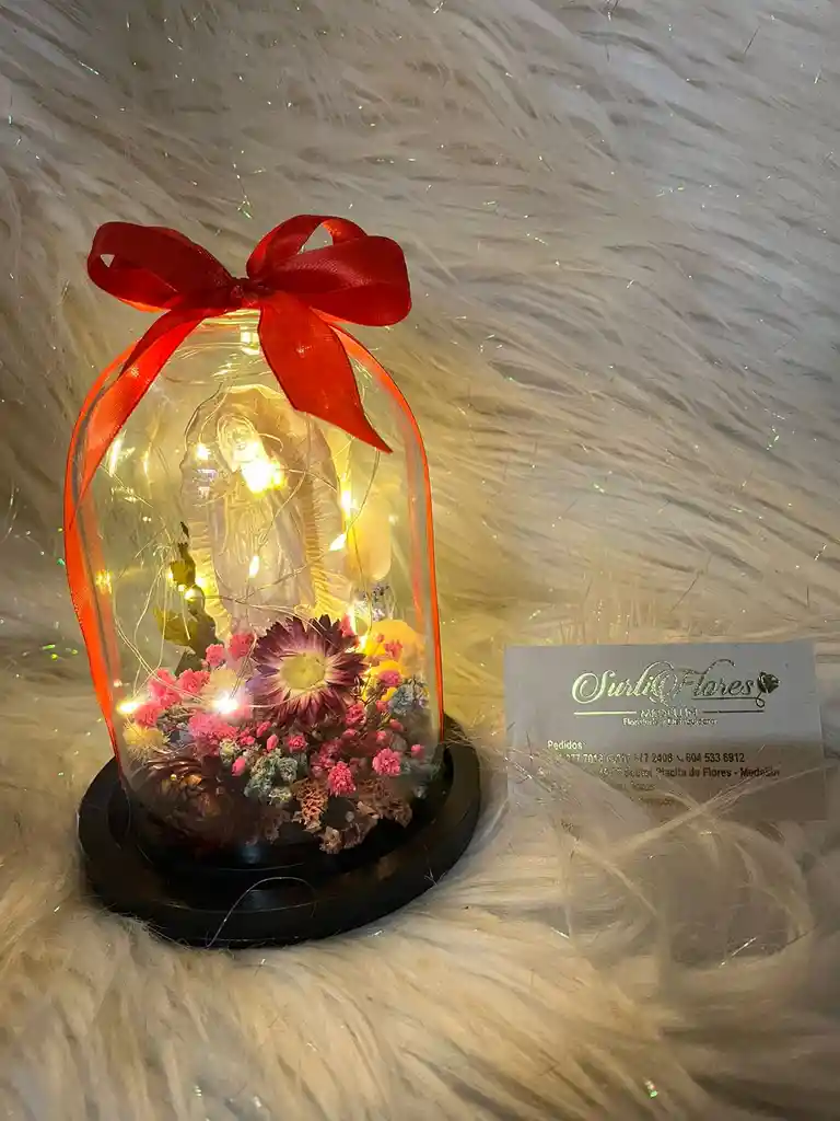 preservada premium pequeña, cuenta con base de madera y urna grande, duración de 3 a 5 años