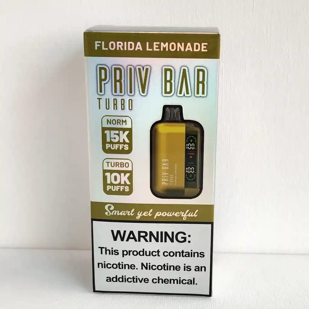 VAPEADOR PRIV BAR 15.000 VAPEADAS ( NORMAL) Y 10.000 (TURBO) SABOR FLORIDA LEMONADE. ESTE PRODUCTO CONTIENE NICOTINA UNA SUSTANCIA ADICTIVA, ES PERJUDICIAL PARA LA SALUD, PROHIBIDA SU VENTA A MENORES DE EDAD.