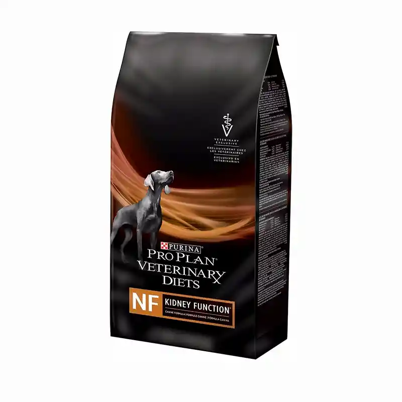 Pro Plan NF (Kidney Function) es una dieta veterinaria especializada de Purina para perros adultos con enfermedad renal crónica, diseñada para ayudar a controlar la insuficiencia renal, reducir toxinas metabólicas, mantener masa muscular, y apoyar la salud renal con niveles reducidos de fósforo y sodio, proteínas de alta calidad y ácidos grasos Omega-3, siendo también útil para urolitiasis por oxalato de calcio y encefalopatía hepática.
