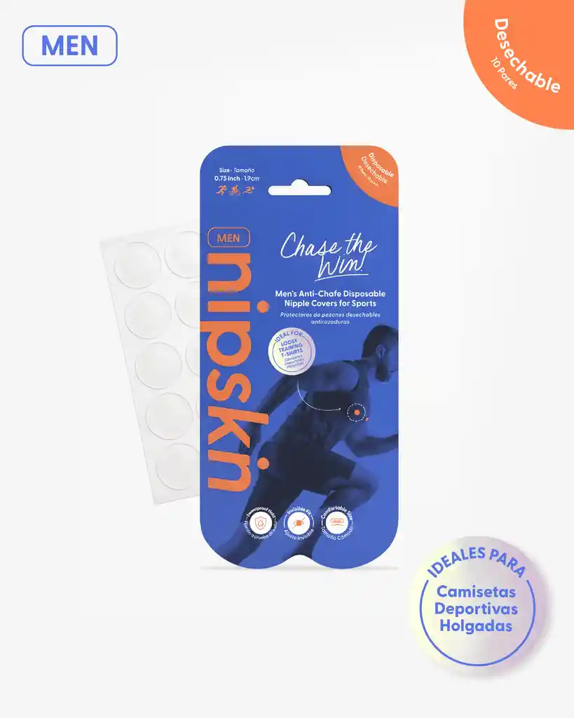 Entrena sin distracciones. Los NIPSKIN MEN Desechables están diseñados para hombres que corren, pedalean y compiten, protegiendo los pezones de la fricción constante causada por el sudor, el movimiento y la ropa deportiva. Su tamaño mini cubre exactamente lo necesario sin molestar ni sentirse pesado. Se adhieren con firmeza, incluso en entrenamientos largos, sin generar tirones incómodos al retirarlos. Ideales para running, ciclismo, triatlón y sesiones de alto impacto, especialmente bajo camisetas deportivas holgadas. Más kilómetros. Menos dolor. Cero rozaduras.