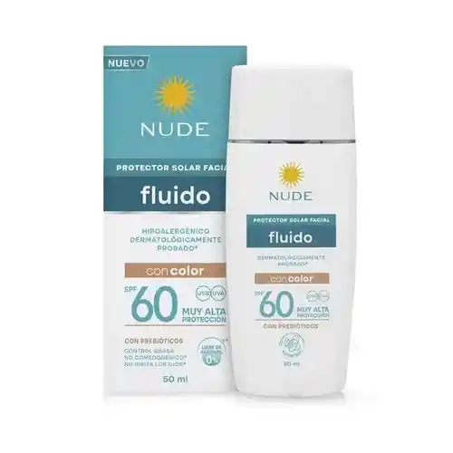 NUDE Protector Solar Facial SPF 60 Fluido con Color ofrece una protección avanzada y ultraligera contra los rayos solares, ideal para el cuidado diario de la piel. Su fórmula es hipoalergénica, no comedogénica y no irrita los ojos, lo que la hace perfecta para todo tipo de piel, incluidas las mixtas y grasas.