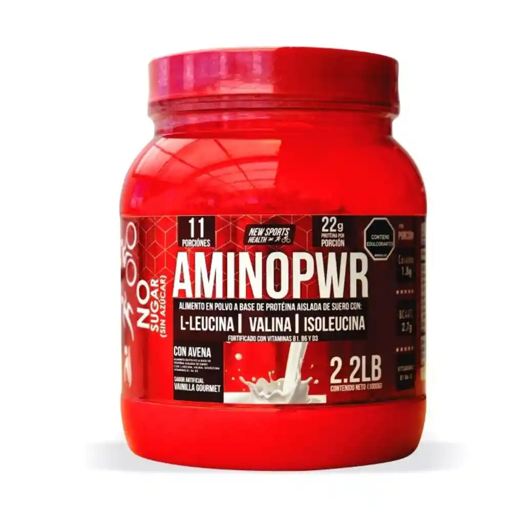 PROTEÍNA AISLADA DE SUERO, SIN AZÚCAR, BASE AVENA: AMINOPWR X 1.000G. CON SU COMPRA SE LE OBSEQUIAN 2 SACHETS DE PREENTRENO 100 % naturales, a base de remolacha , sandía, granada , guaraná, sabor a frutos rojos. AMINOPWR es una formula especializada creada para suplir las necesidades a nivel nutricional de: * El deportista de largo aliento favoreciendo el rendimiento y la recuperación muscular en disciplinas deportivas como el ciclismo , atletismo , patinaje , natación , futbol, gimnasia * Para personas que estén en su etapa de formación en gimnasio. * Aumenta masa muscular, elimina grasas y carbohidratos. * Favorece el fortalecimiento de los huesos , es antioxidante. * Tiene Aminoácidos Leucina: activa la síntesis de las proteínas también llamada anabolismo. * En general para la RECUPERACION MUSCULAR. COMPOSICIÓN: PROTEINA AISLADA DE SUERO, Isoleucina: LIMITA EL DESGASTE MUSCULAR, estimula el sistema inmunitario, aumenta la síntesis de glóbulos rojos y las hormonas de crecimiento. Valina: favorece el desarrollo muscular y ayuda en la RECUPERACION de el mismo. CASEINA: proteína de alto valor biológico, nos aporta calcio y fosforo. AVENA: disminuye los niveles de colesterol y azúcar en la sangre. Contribuye a un metabolismo energético normal. ALBÚMINA DE HUEVO: su función es transportar los nutrientes a la sangre, es una proteína que favorece el aumento de masa muscular. AMINO PWR NO CONTIENE AZÚCAR. USO: Disolver 1 cuchara medidora en 1 vaso de agua o leche. REGISTRO SANITARIO INVIMA: RSA-0010242-2020 y cuenta con la última resolución del Ministerio de Salud. CANTIAD: 1.000 gramos. SABOR: Vainilla.