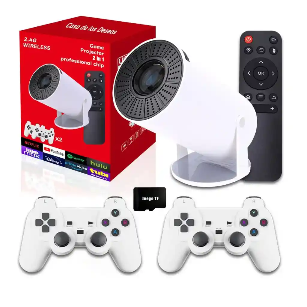 El proyector consola de juegos combina entretenimiento visual y diversión interactiva en un solo dispositivo diseñado para disfrutar en familia o con amigos Permite proyectar imágenes y videojuegos en gran formato creando una experiencia envolvente ideal para el hogar Su diseño compacto facilita su instalación y transporte mientras que su funcionamiento es sencillo y práctico Integra juegos clásicos que brindan horas de entretenimiento sin necesidad de equipos adicionales ofreciendo una opción versátil que une proyección y consola en un solo producto pensado para el ocio y la diversión diaria