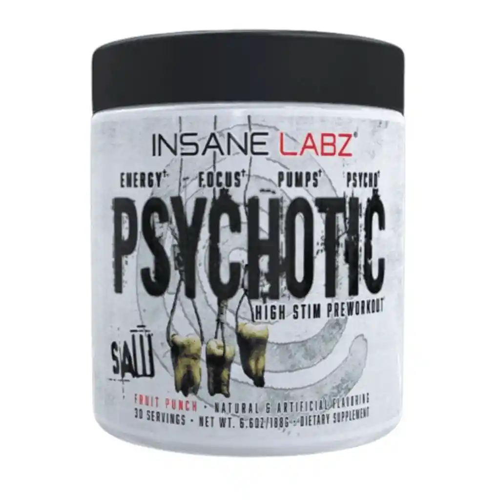 INSANE LABZ Pre-entreno de alta estimulación para energía, enfoque y rendimiento. Psychotic SAW Insane Labz es un suplemento deportivo en polvo tipo pre-workout formulado para apoyar altos niveles de energía, el enfoque mental y el rendimiento físico antes del entrenamiento. Está orientado a usuarios con experiencia que buscan una estimulación potente para sesiones intensas y demandantes. Beneficios ✔ Apoya energía elevada antes y durante el entrenamiento ✔ Contribuye al enfoque y la concentración mental ✔ Ideal para entrenamientos duros y de alta exigencia Componentes clave ✔ Complejo estimulante diseñado para pre-entreno ✔ Ingredientes orientados a energía y rendimiento ✔ Fórmula en polvo de rápida preparación ✔ Presentación de 30 servicios Uso recomendado ✔ Consumir antes del entrenamiento para apoyar energía y enfoque ✔ Ajustar el consumo según tolerancia personal a estimulantes ✔ Integrar dentro de una rutina de entrenamiento estructurada Este producto es un suplemento alimenticio. No sustituye una alimentación equilibrada ni un estilo de vida saludable.