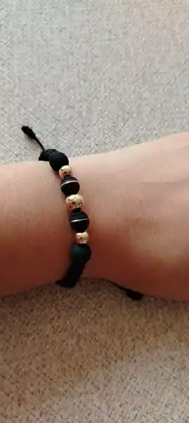 pulsera 1bola 8mm 2 bolas 6mm 2 neoprenos 1 raya negra oro18k Característiccon Color amarillo 1 bola de 8mm y 2 bolas de 6mm Material: Oro 18 kilates