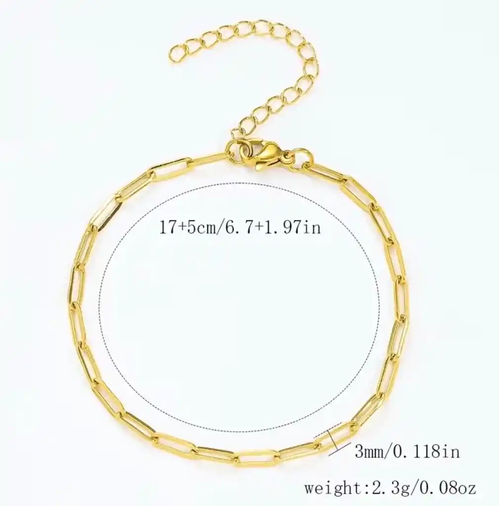 Pulsera Cadena Plana Dorada De Acero Inoxidable Armable