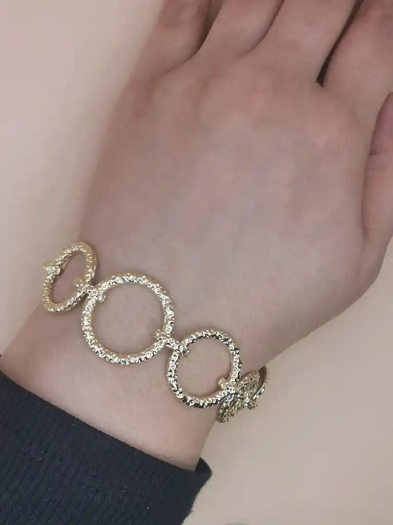 Pulsera de eslabones de círculos martillados Material en rodio