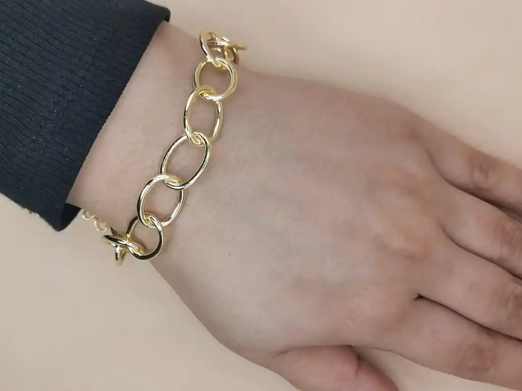 pulsera de eslabones gruesos estilo cadena en tono dorado Material rodio