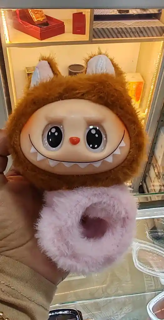 Labubu coleccionable con cuerpo de peluche suave y esponjoso en tono rosado, cabeza en peluche café y su clásica expresión traviesa con ojos brillantes y colmillos visibles. Un diseño adorable y único, perfecto para decorar, coleccionar o regalar. ✨ Ideal para quienes aman los art toys y los detalles con personalidad. ¡Llévalo contigo! 🧸💗