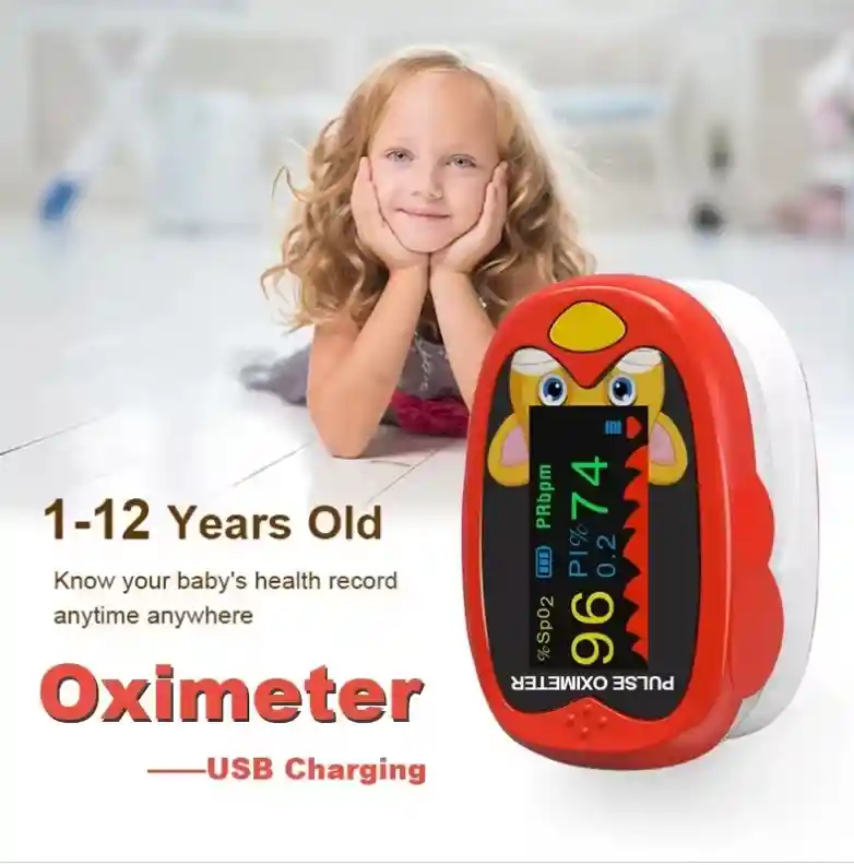 "este instrumento médico - medidor de la saturación de oxígeno de hemoglobina arterial (SpO2) y medidor de la frecuencia cardíaca por minuto (PR BPM). Se utiliza como equipo de diagnostico primario y monitoreo en pacientes pediátricos (neoanatales hasta 12 años) con afecciones respiratorias. Uso: Pedíatrico (0 meses a 12 años) Medición: Saturación porcentual de oxígeno (SpO2) y frecuencia cardíaca (PR BPM) Método de medidición: Ley de Beer Lambert Pantalla: Pantalla digital OLED Indicador: En pantalla curva p, barra de frecuencia cardíaca y batería. Rangos de medición: SpO2: 70% – 99% – PR: 30 BPM – 240 BPM Precisión de medición: SpO2: +/- 3% – PR: +/- 1 BPM Función: Detección de batería baja Baterías: Batería de litio recargable = 30mA Dimensión: 44mm x 28,3mm x 26,5mm Peso: 45g Apagado automático: 8 segundos de inactividad Compatibilidad Electromagnética: IEC 60601-1-2"