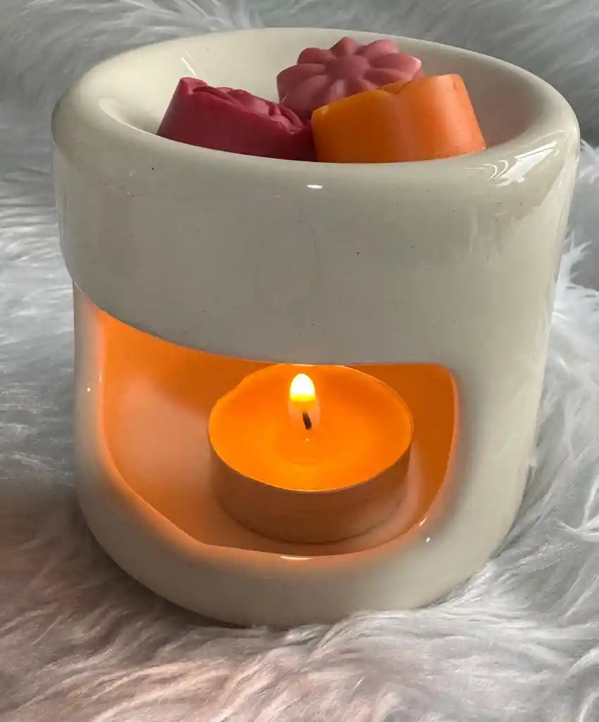 Quemador De Esencias En Cerámica Blanco Elegante + Cera Aromática Frutal | Set Decorativo Y Relajante