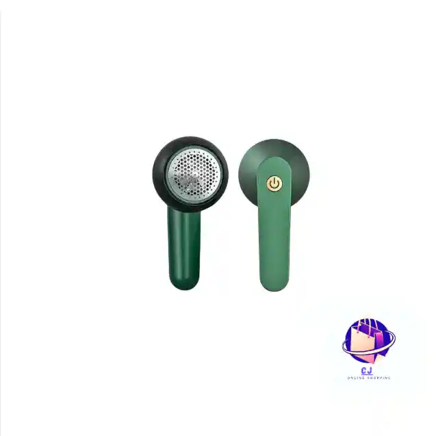 Aparato portátil que elimina pelusas y bolitas de la ropa mediante cuchillas internas giratorias, mejorando la apariencia de las prendas de forma rápida y segura.