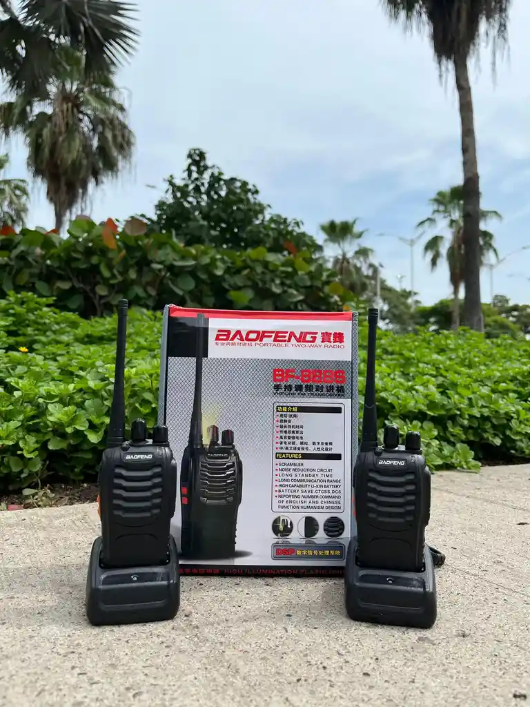 Ref 8888 La distancia entre equipos puede variar y dependerá principalmente de las condiciones del terreno y obstáculos2 x Radios FB-888S walkie-talkie2 x Manos Libres2 x Batería recargable2 x Antena2 x Base de carga2 x Clip posterior2 x Cordón1 x Manual