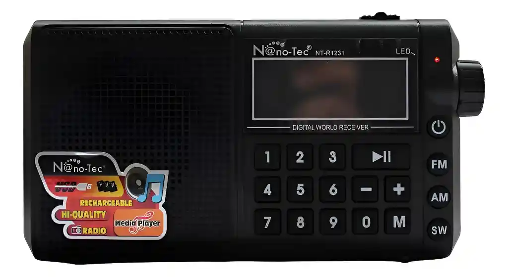 Radio parlante recargable 3 bandas AM/FM/SW Ideal para quienes buscan una fuente de entretenimiento versátil y ecológica en cualquier lugar, con múltiples opciones de conectividad y carga. DESCRIPCIÓN Este radio parlante recargable combina portabilidad y versatilidad en un dispositivo ideal para aquellos que disfrutan de la radio y la música en cualquier lugar. Equipado con recepción de tres bandas (AM, FM y SW), permite acceder a una amplia gama de estaciones, asegurando entretenimiento e información. Además, incluye conectividad Bluetooth, que facilita la reproducción de música desde dispositivos móviles sin necesidad de cables. Su diseño incorpora un panel solar, permitiendo una carga ecológica y conveniente cuando se está al aire libre. También cuenta con una antena telescópica que mejora la recepción y asegura una señal más clara, incluso en zonas con baja cobertura. Perfecto para acampadas, picnics o simplemente como un complemento de entretenimiento en casa, este radio altavoz es fácil de llevar a todas partes. CARACTERÍSTICAS -Tres bandas de frecuencia: AM, FM y SW. -Conectividad Bluetooth integrada. -Panel solar para carga ecológica. -Antena telescópica para mejor recepción. -Diseño portátil y ligero. -Batería recargable incorporada. -Altavoz potente para una mejor calidad de sonido. -Entrada auxiliar para conexión por cable. -Indicador de carga de batería. -Fácil de usar en interiores y exteriores. MEDIDAS altura:4.5cm largo:4cm ancho:16cm peso:395g QUE INCLUYE LA COMPRA X1 radio