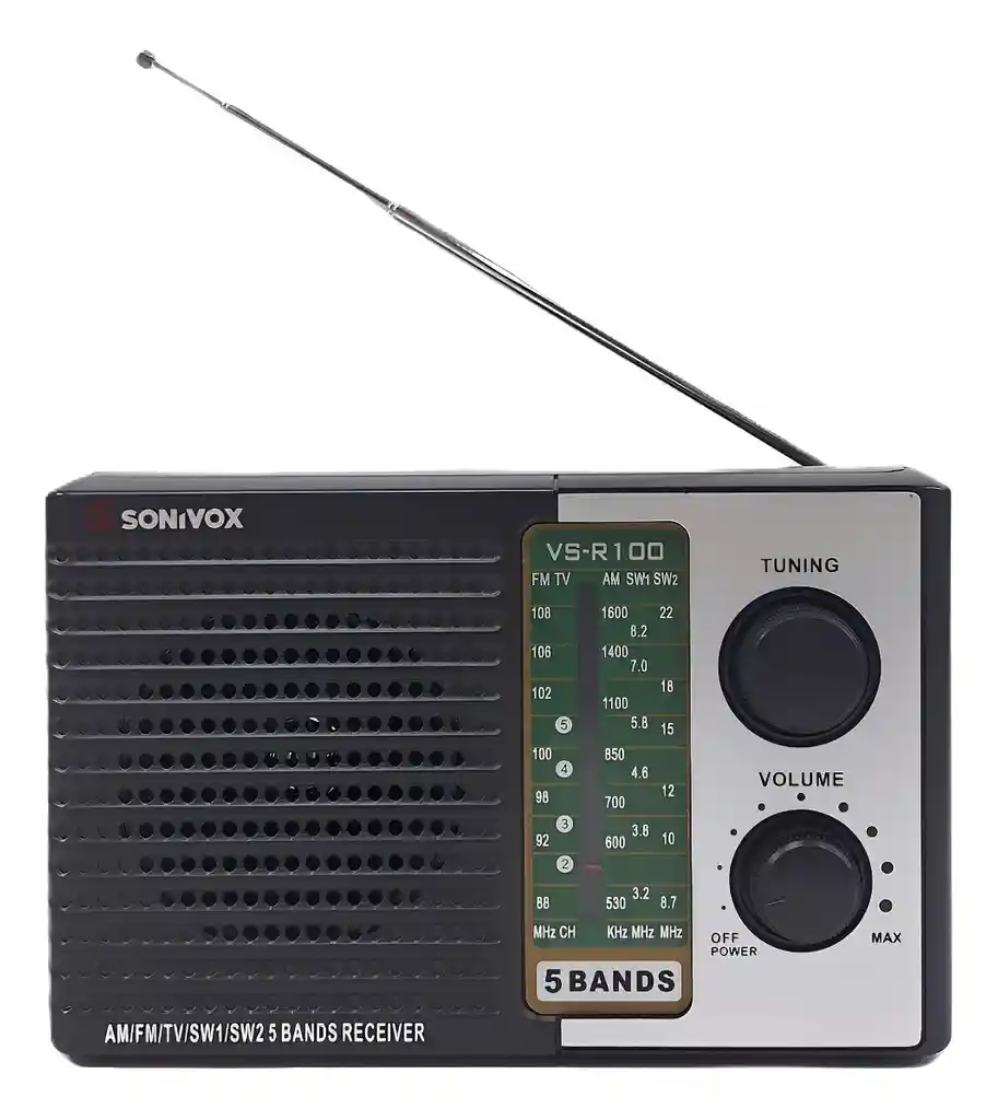 El Radio Portátil Multibanda es ideal para quienes buscan buen sonido, facilidad de uso y portabilidad. Cuenta con alta sensibilidad de recepción, gracias a su antena telescópica, y un potente sistema de audio que garantiza una experiencia clara y estable en cualquier lugar. Funciona tanto con baterías como conectado a la corriente, lo que lo hace perfecto para el hogar, el trabajo, actividades deportivas o al aire libre. Su diseño liviano y compacto permite transportarlo fácilmente a donde lo necesites. Características principales Potente sistema de sonido Alta sensibilidad de recepción Antena telescópica integrada Fácil uso y transporte Diseño portátil y liviano Entrada para auriculares (escucha privada)