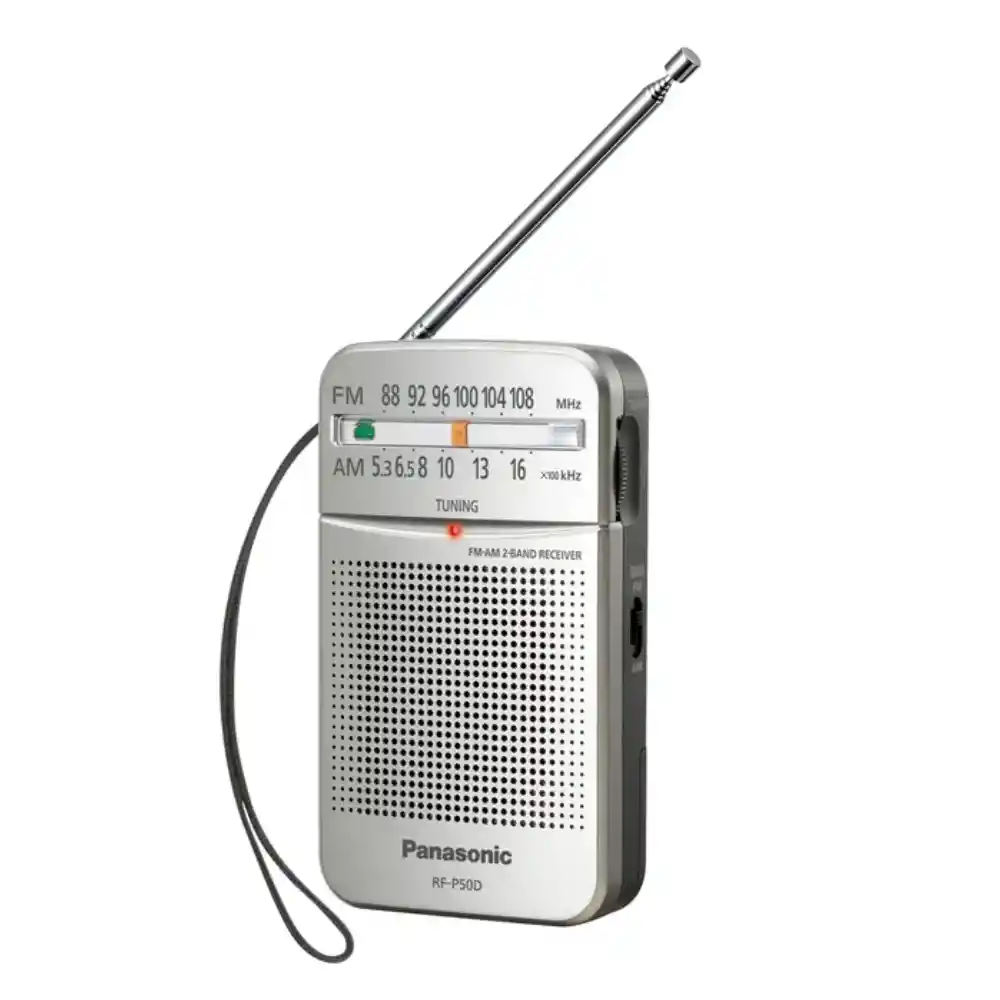 El Panasonic RF-P50D es una radio portátil confiable pensada para acompañarte en situaciones donde la conectividad no está garantizada. Su sintonizador digital con control automático de frecuencia permite una recepción clara y estable, facilitando el acceso a noticias, alertas meteorológicas y música sin complicaciones. Gracias a su diseño compacto y funcionamiento a batería, resulta ideal para campamentos, pesca o cortes de energía. El LED de sintonización y el puntero luminoso aseguran una lectura cómoda tanto de día como de noche, manteniéndote informado cuando más lo necesitas. El altavoz integrado de rango completo ofrece un sonido claro para escuchar indicaciones importantes o disfrutar de tus emisoras favoritas. Además, incluye salida para auriculares, brindando una experiencia de escucha más personal cuando se requiere. TIPO • Radio de bolsillo MARCA • Panasonic MODELO • RF-P50D SINTONIZADOR • Digital CONTROL AUTOMÁTICO DE FRECUENCIA (AFC) • Sí BANDAS DE SINTONIZACIÓN • AM • FM RANGO DE FRECUENCIA • AM: 530 – 1.600 kHz • FM: 87.5 – 108 MHz ALTAVOZ • Integrado de aproximadamente 5.7 cm CONECTIVIDAD • Salida para auriculares de 3.5 mm ANTENA • Telescópica integrada TIPO DE ALIMENTACIÓN • Baterías VOLTAJE DE OPERACIÓN • 3 V DC BATERÍAS REQUERIDAS • 2 x AA DIMENSIONES • Alto: 117.4 mm • Ancho: 69.5 mm • Profundidad: 29.7 mm PESO • 111 g COLOR • Plateado