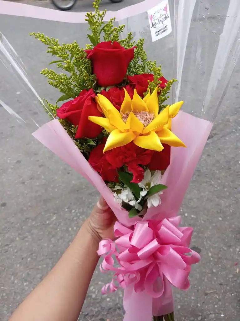 HERMOSA CONVINACION DE ROSAS NATURALES Y GIRASOL ETERNO