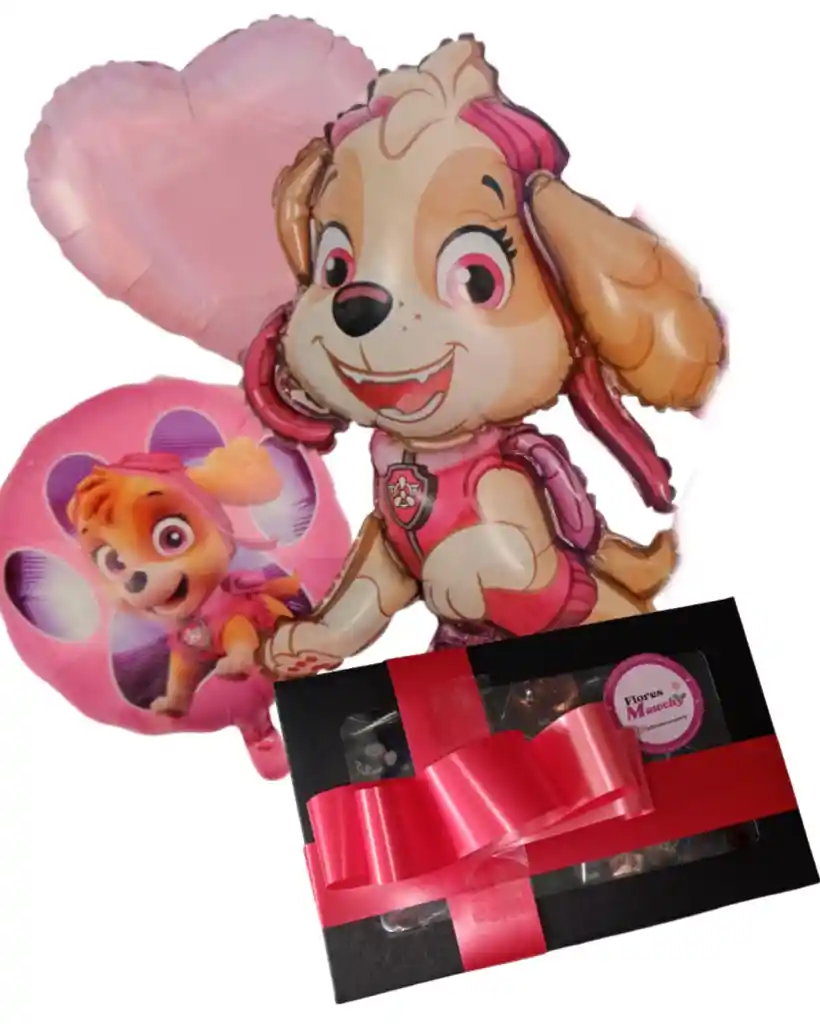 hermoso ramo de globos metalizados con aire frio , acompañado de una caja de chocolates de 8 unidades y tu mensaje personal