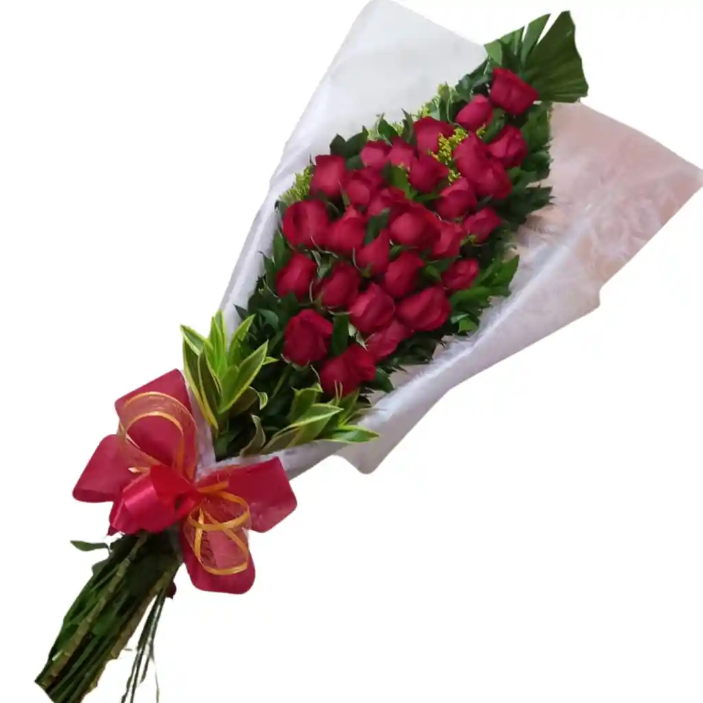 Hermoso arreglo floral de 30 rosas en forma de ramillete, con moño decorativo. Perfecto para celebrar una fecha especial. Puedes incluir un mensaje en nuestra tarjeta de cortesía.