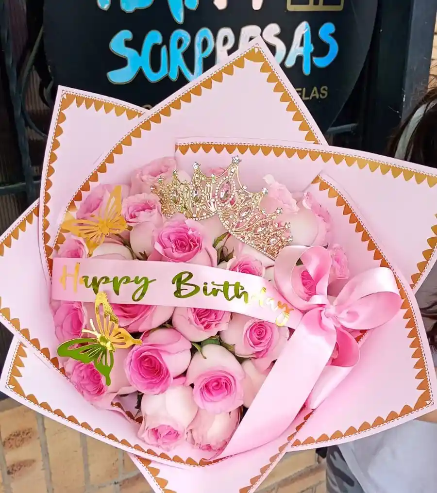 RAMO 24 ROSAS ROSADAS CON CORONA