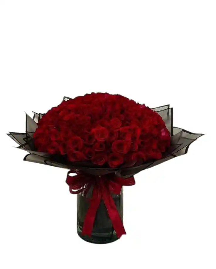 es la máxima representación del romance y la sofisticación, diseñado para quienes desean realizar un gesto inolvidable y de gran impacto. El arreglo presenta una cúpula monumental y perfecta de cientos de rosas rojas premium, seleccionadas por su color intenso y textura aterciopelada, que crean una presencia visual imponente.