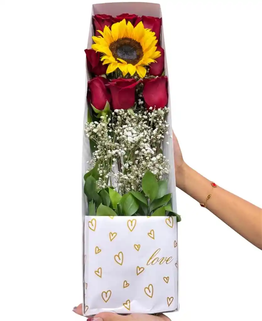 Ramo De 10 Rosas Con 1 Girasol Bouquet De Rosas Con Girasol