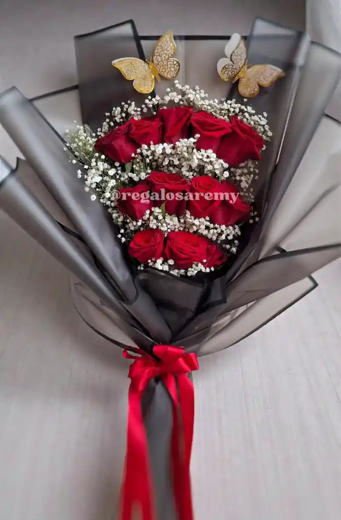 Ramo de rosas con diseño armonioso, decorado con delicadas perlas. Un detalle elegante y sofisticado para sorprender en cualquier ocasión especial.