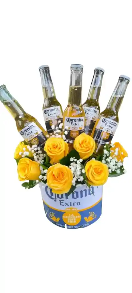 Contiene 6 rosas amarillas 5 Coronitas. follaje Tarjeta personalizada