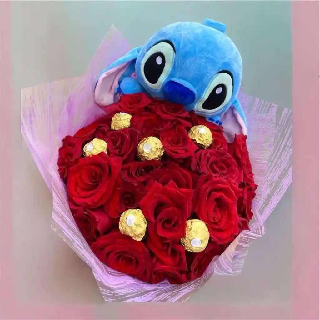 CONTIENE 20 0 24 rosas rojas 6 chocolates Peluche Stich Tarjeta personalizada ETIQUETAS DE BUSQUEDA Ramo de flores Ramo de rosas Bouquet de flores Bouquet de rosas Arreglo floral Ramo de rosas rojas ramo de flores con rosas rojas