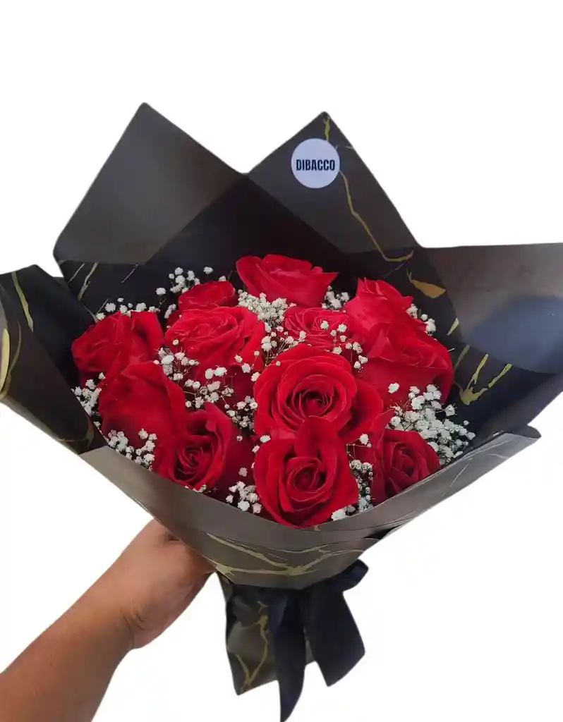 Contiene 12 rosas sojas Follaje blanco Decoracion Ramo de San Valentín Ramo de feliz día San Valentín Arreglo de mujer Ramo para mujer