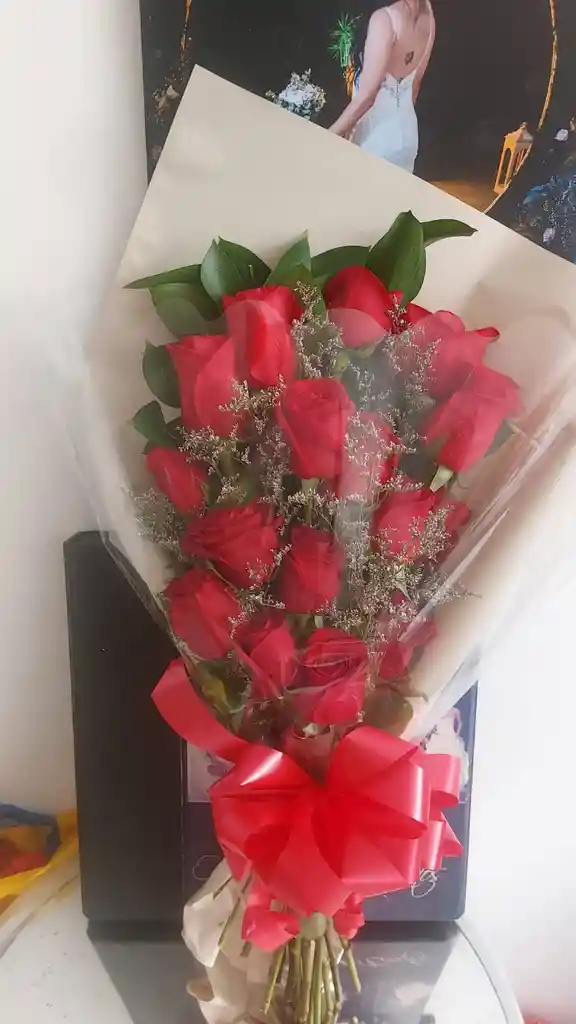 ramo de mano con 15 rosas rojas