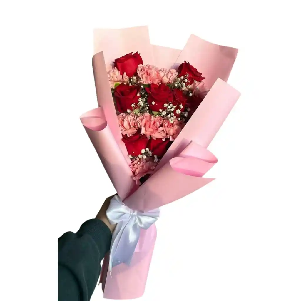 Ramo de 12 rosas de exportación con claveles. Tarjeta personalizada (excepto dias masivos como mujer, madres, etc..)