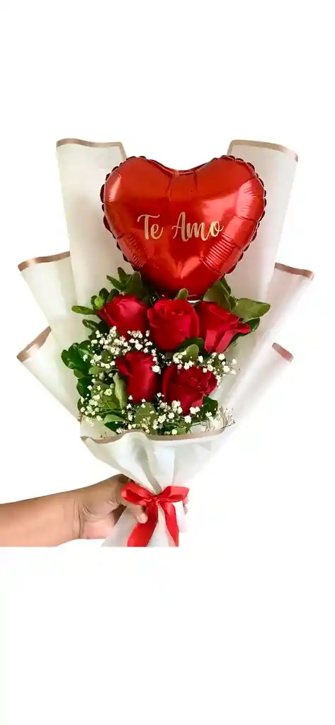 contiene 5 rosas rojas globo rojo follaje verde tarjeta personalizada ramo de rosas arreglo de rosas engalanado de rosas buquet rosas regalo de cumpleaños regalo feliz día regalo para cualquier ocasión regalo de amor y amistad regalo para mujer regalo para novia