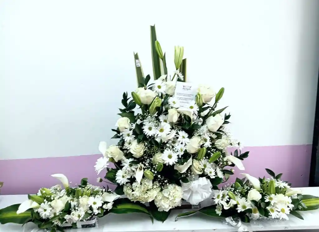 ARREGLO FLORAL , EN FLORES BLANCAS CON TARJETA MENSAJE PERSONALIZADO