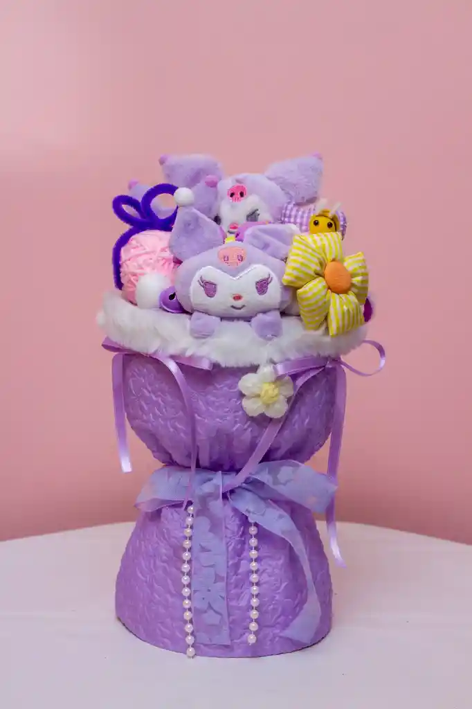 ¡Un regalo lleno de ternura y estilo único! 🎁🌸Nuestro arreglo “Kawaii Dreams” está diseñado para quienes aman lo adorable 💫. Incluye peluches suaves en tonos lilas 💜, flores de tela 🌼, cintas satinadas 🎀 y detalles perlados que hacen de este regalo algo simplemente irresistible. Perfecto para sorprender en cumpleaños, detalles especiales o simplemente para alegrar el día de alguien 💕.