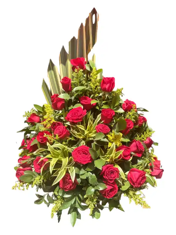 Hermoso arreglo de rosas rojas frescas con follajes naturales, diseñado para celebrar la fuerza, la belleza y la elegancia de la mujer. Un detalle perfecto para sorprender y honrar en su día especial.