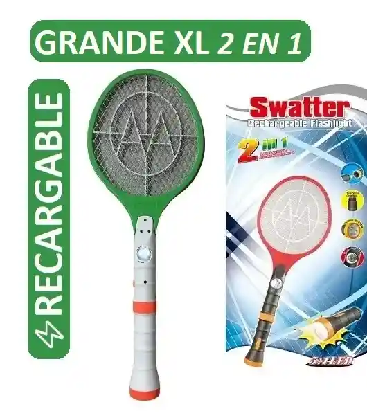 Raqueta Mata Zancudos Eléctrica Grande Recargable Mosquitos Moscas Doble Linterna