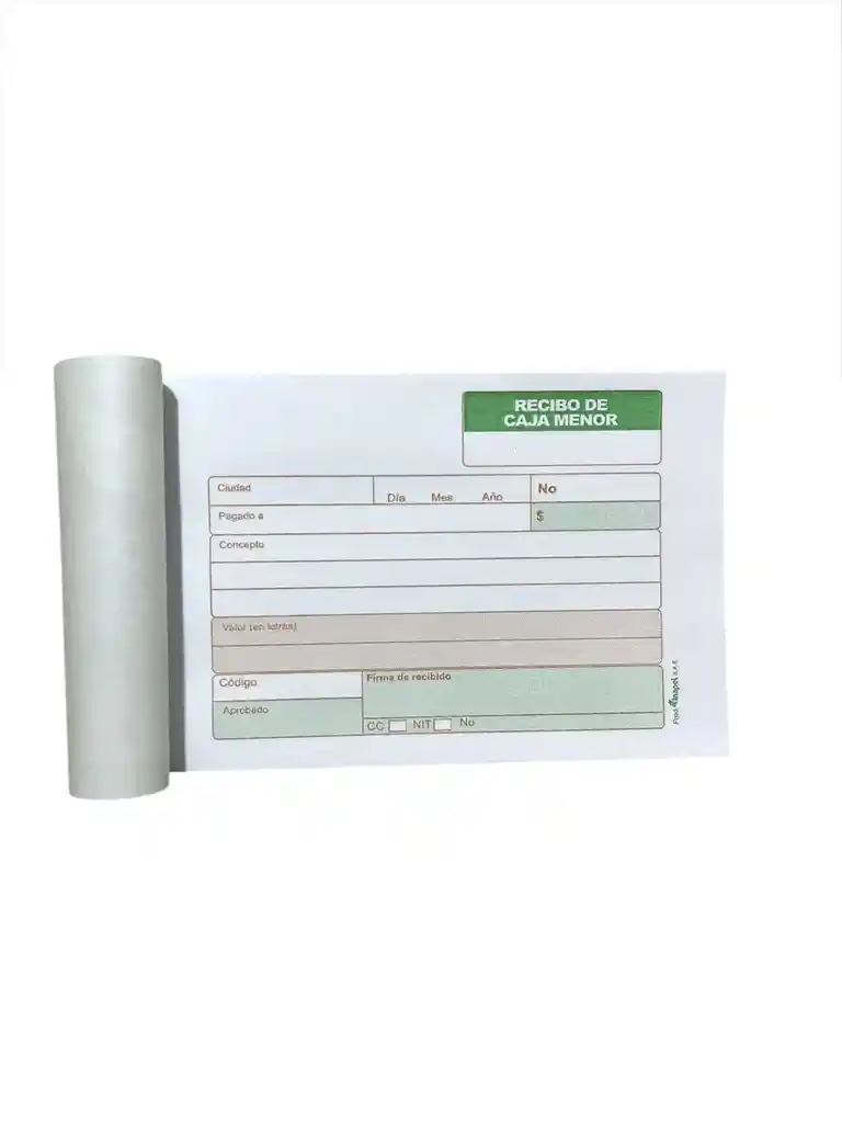 Recibo Caja Menor Talonario X 200 Unidades 12.5 Cm X 8.5 Cm. A un solo color Para uso en el control de caja menor