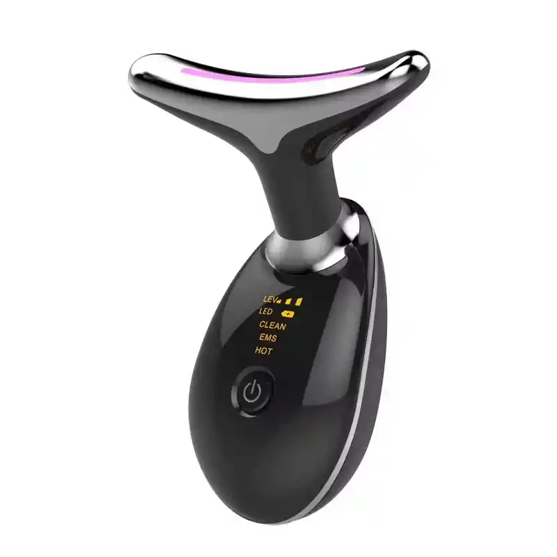 Tecnología: Utiliza terapia de luz LED (con múltiples colores como rojo, azul y verde), vibración mecánica y función de calor. Modos de uso: Cuenta con diferentes modos, incluyendo 'Clean' para limpieza profunda, 'EMS' para reafirmar y mejorar la elasticidad, y funciones de calor. Función: Ayuda a estimular la circulación sanguínea, promover el metabolismo y aumentar la absorción de productos de cuidado facial. Diseño: Cuenta con un diseño ergonómico en forma de 'T' o curva para adaptarse a los contornos del rostro, cuello y barbilla.