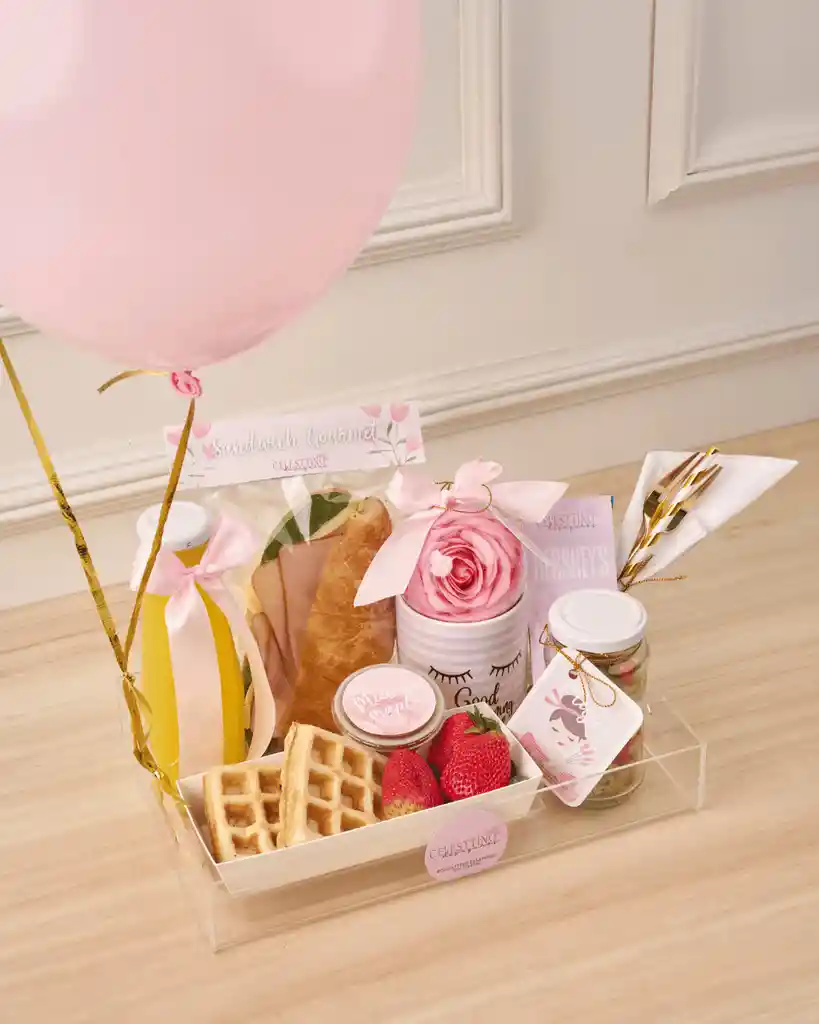 ¿Cómo pedir Regalo Con Globos Para Mujer. Gourmet En Bandeja Acrilica en Rappi?