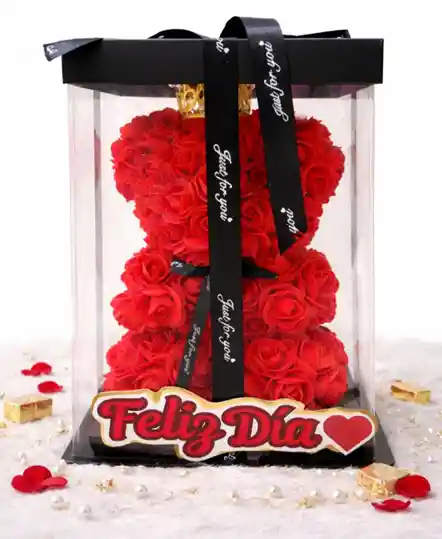 Anchetas, desayunos sorpresa y detalles para cumpleaños, aniversario, amor y amistad, Día de la Madre, Mujer, Niño, Navidad y San Valentín. Incluye flores, chocolates, peluches y fresas con chocolate. Contenido: - Oso de rosas - Caja trasparente - Cinta moño - Tarjeta Personalizada Adiciones: - Globo burbuja marcado 15,000 - Arreglo floral 50.000 - Peluches desde 20.000