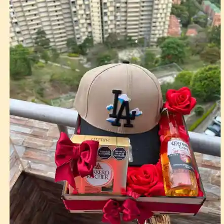 Caja decorada Chocolates ferrero Cerveza Rosas eternas 1 gorras de tu preferencia, (una vez realizado el pedido le enviamos catálogo de gorras) Adiciones: - Globo burbuja marcado 15,000 - Arreglo floral 50.000 - Peluches desde 20.000