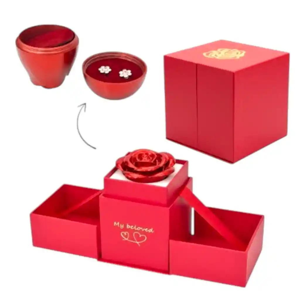 Regalo Premium Cofre rojo Rosa con topos dorados de covergold