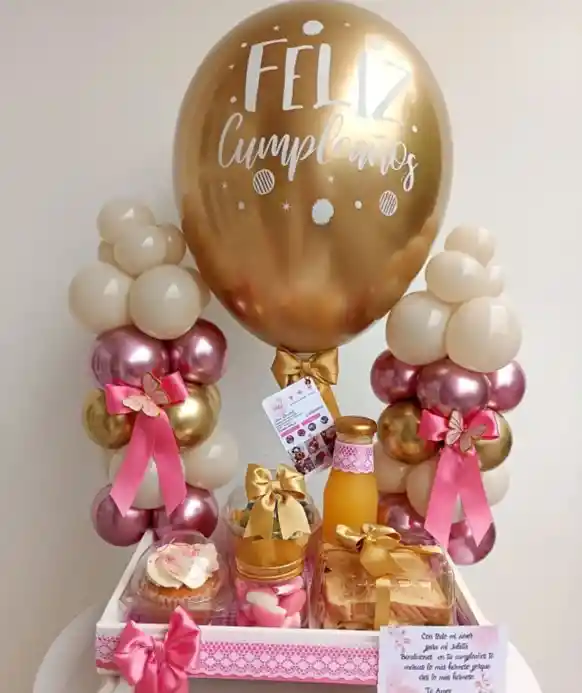 Anchetas, desayunos sorpresa y detalles para cumpleaños, aniversario, amor y amistad, Día de la Madre, Mujer, Niño, Navidad y San Valentín. Incluye flores, chocolates, peluches y fresas con chocolate. Contenido: - Caja madera - Frutas - Masmelos - Sandwinch - Jugo naranja - Cookie - Globos satin - Tarjeta personalizada Adiciones: - Globo burbuja marcado 15,000 - Arreglo floral 50.000 - Peluches desde 20.000